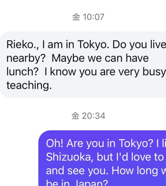 先週、金曜日に彼から日本にいると連絡をもらいました。
