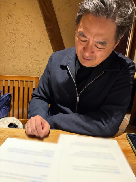 彼は私が急遽作った英語の資料をじっくり読んでくださり、アドバイスをくれました。